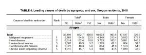 Oregon 2018 Deaths